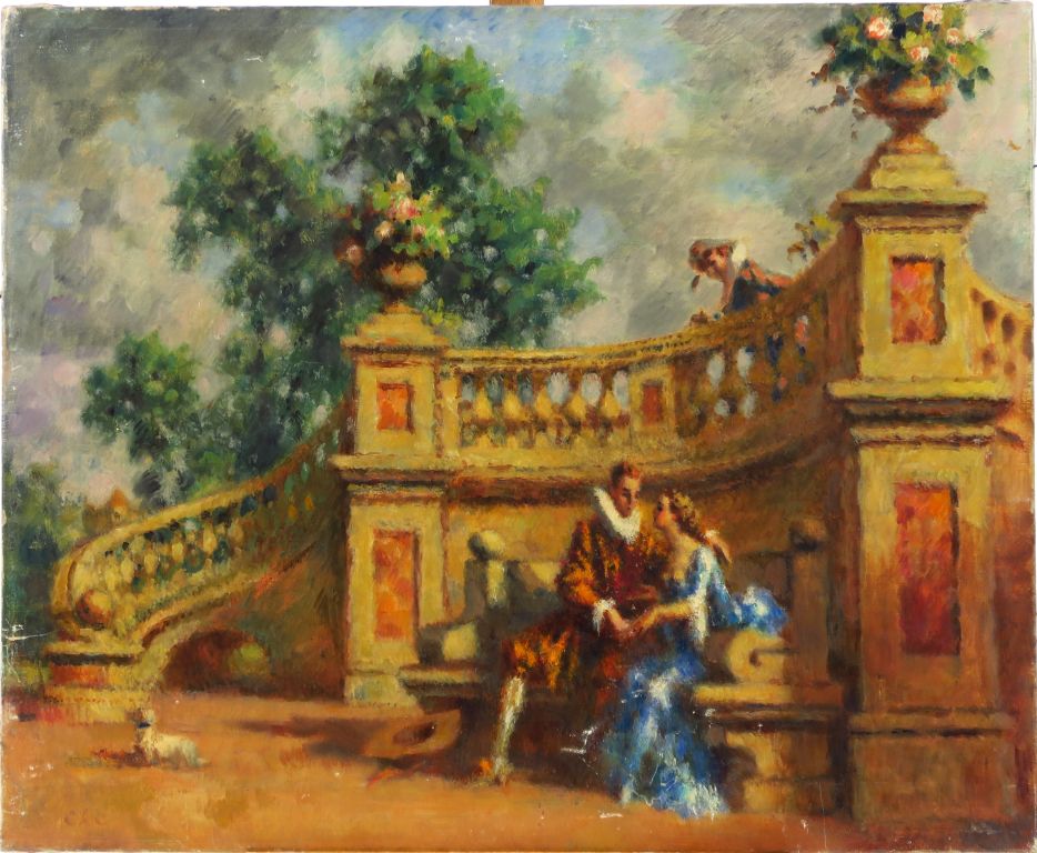 Charles GUERIN. "L'indiscret" Huile sur toile, monogrammée en bas à gauche. Dim. 50 x 60,5 cm (légers accidents)