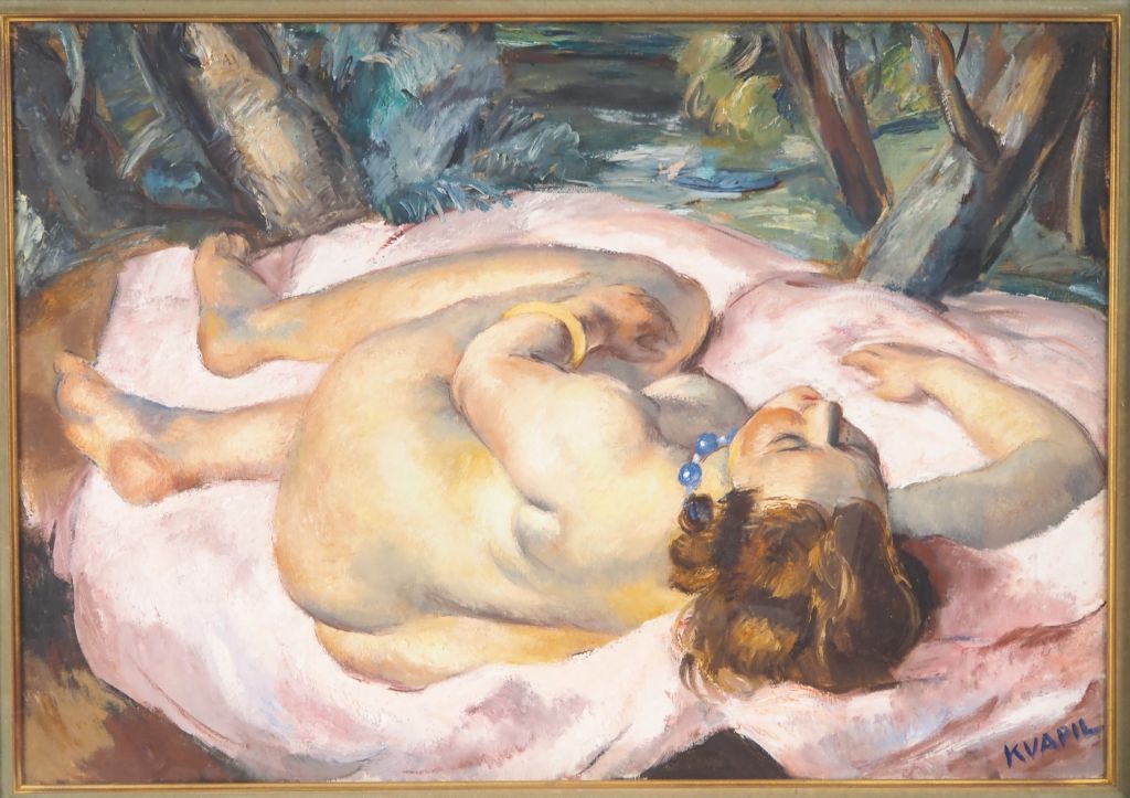 Charles KVAPIL (1884-1957) « Nu au collier bleu », circa 1928 Huile sur toile. Signée en bas à droite Dim. 81 x 116 cm Provenance : -Collection Oscar Ghez. -Collection du Petit Palais, Genève - Collection particulière Monsieur R (Toulouse) Exposition : Fondation de l’Hermitage, La collection d’Oscar Ghez (Collection du Petit Palais de Genève) Lausanne, Suisse (24 janvier - 1er juin 2025). Experts : Frédérick et Pauline Chanoit - 01 47 70 22 33