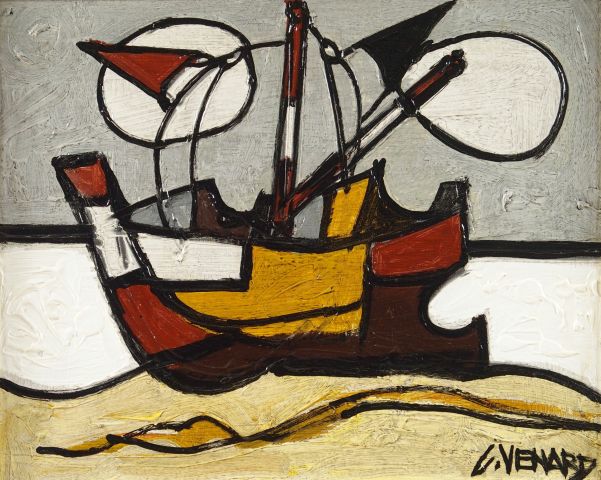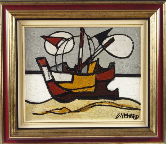 Claude VENARD "Marine". Huile sur toile. Signée en bas à droite. 33 x 41 cm