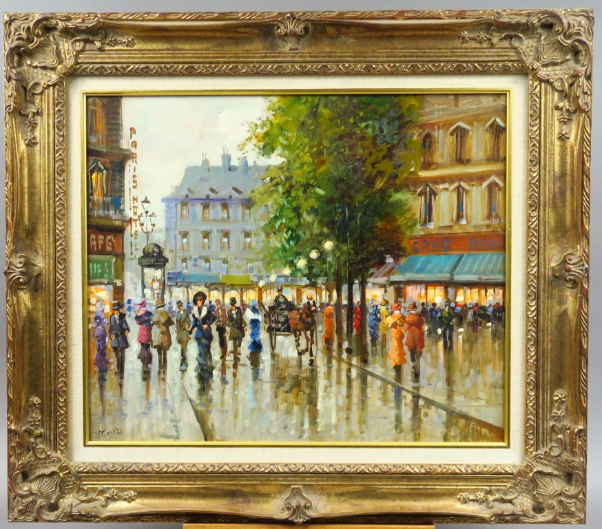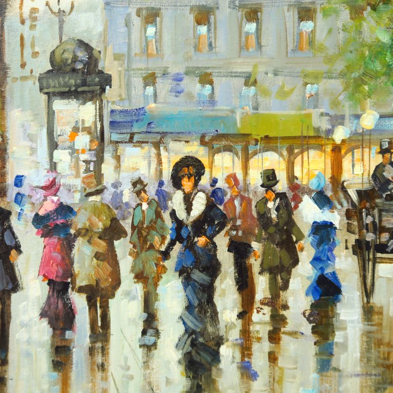 CORTES. "Place animée à Paris". Huile sur toile, signée en bas à gauche. Dim. : 46,5 x 55 cm.