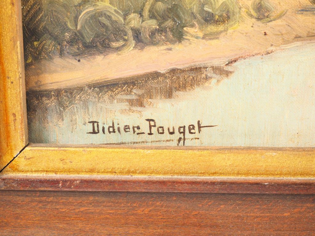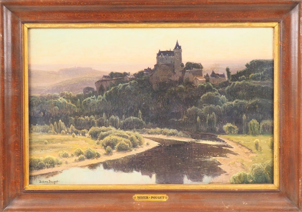 Didier POUGET. "le château de Montfort" Huile sur toile signée en bas à gauche Dim. 39 x 60 cm