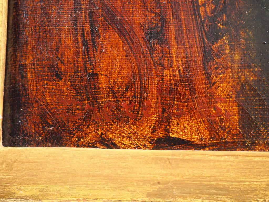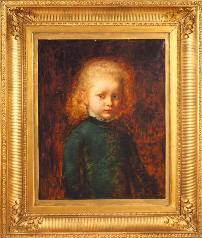 DREXEL. "portrait de fillette blonde" Huile sur toile, signée en bas à gauche et datée 85. dans son cadre en stuc doré de style Louis XVI Dim. 61 x 50 cm