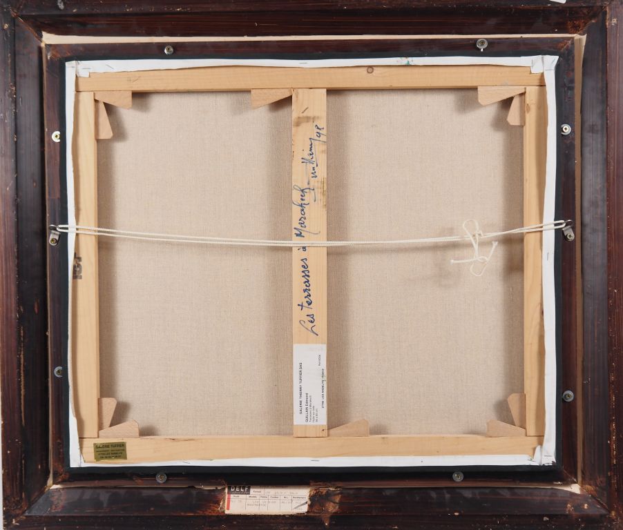 E. GUILLAIN 'Les terrasses à Marrakech'.Huile sur toile, signée en bas à droite, 54 x 65 cm