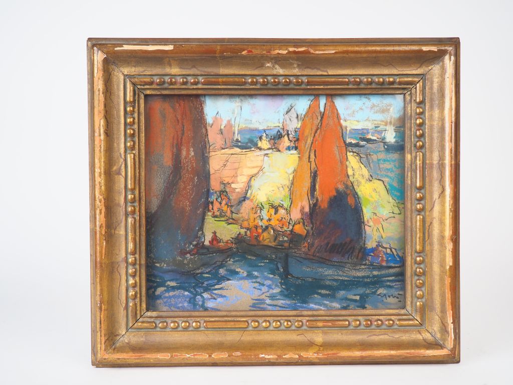 Ecole bretonne Xxème. "Marine". Pastel signé en bas à droite. Dim. 22,5 x 26,5 cm.