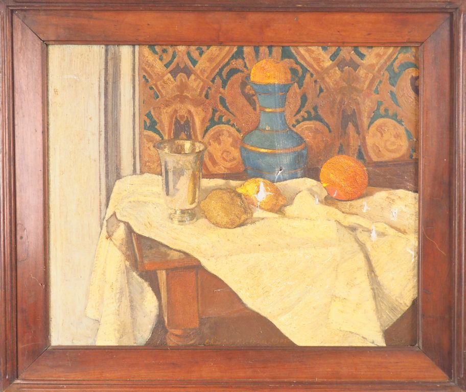 Ecole française fin XIXème début XXème. "Nature morte aux oranges". Huile sur toile. Dim. 50 x 61 cm. (accident).