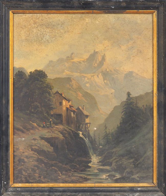 Ecole française fin XIXème - début XXème. "Paysage de montagne". Huile sur toile. Dim. 46 x 38 cm. (Accident).