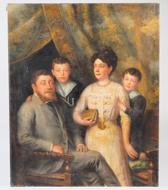 Ecole française XIXème. JN. SILVESTRE "Portrait de famille" Huile sur toile, signée en bas à droite Dim. 120 x 147,5 cm