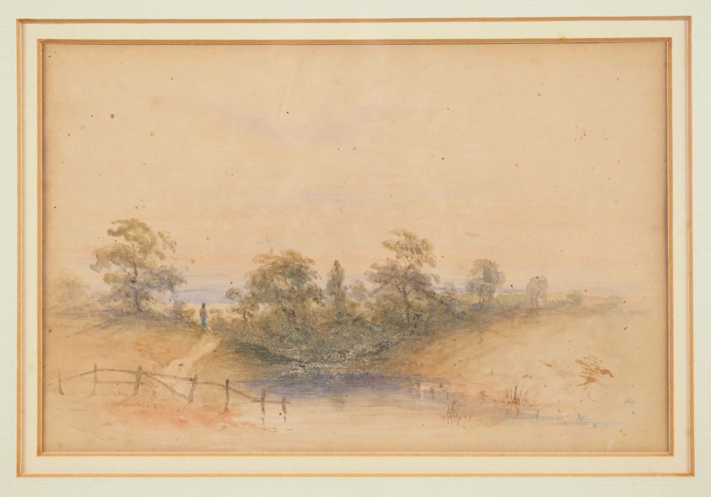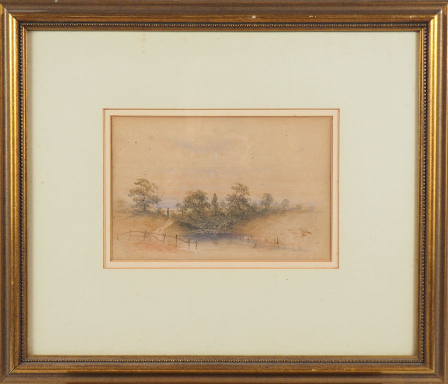 Ecole française XIXème. "paysage animé à la rivière" Aquarelle signée en bas à gauche Dim: 14 X 22 cm