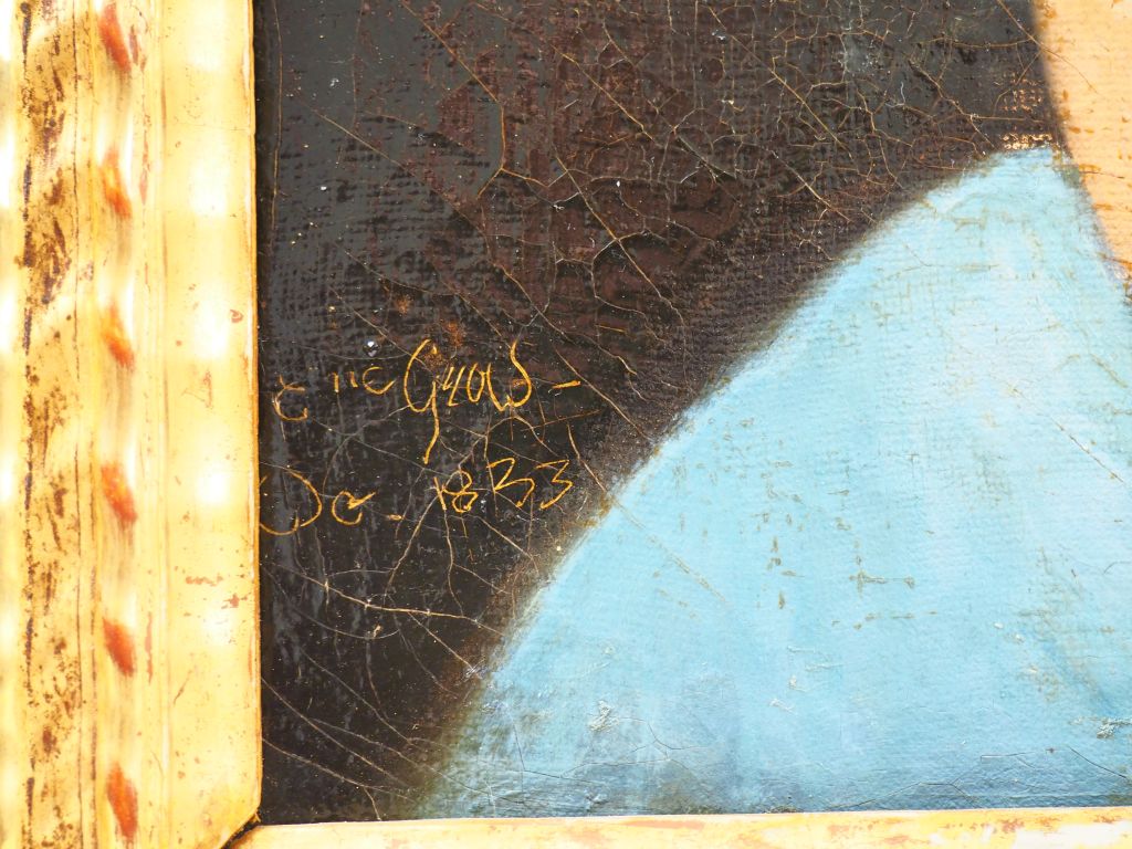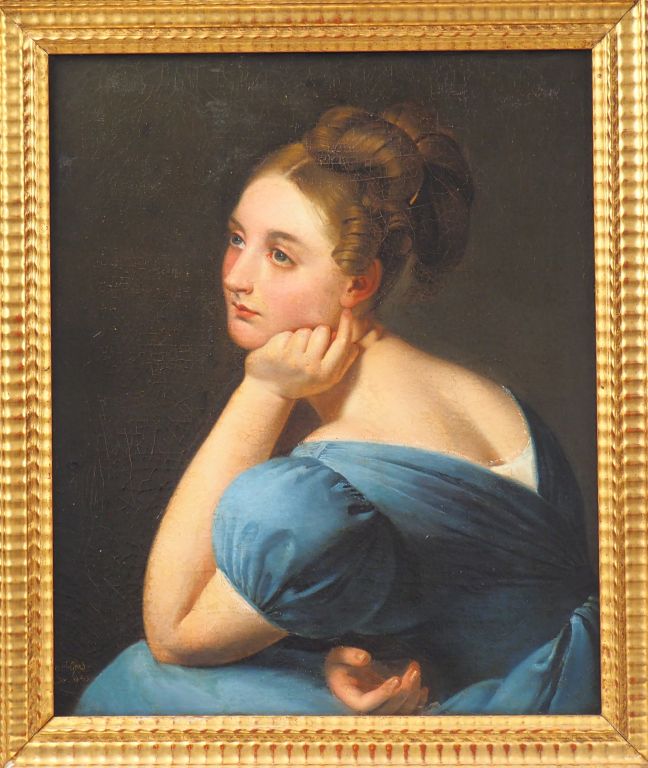 Ecole française XIXème. "portrait de jeune fille pensive" Huile sur toile Dim. 65 x 54 cm (restaurations)