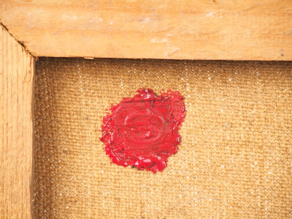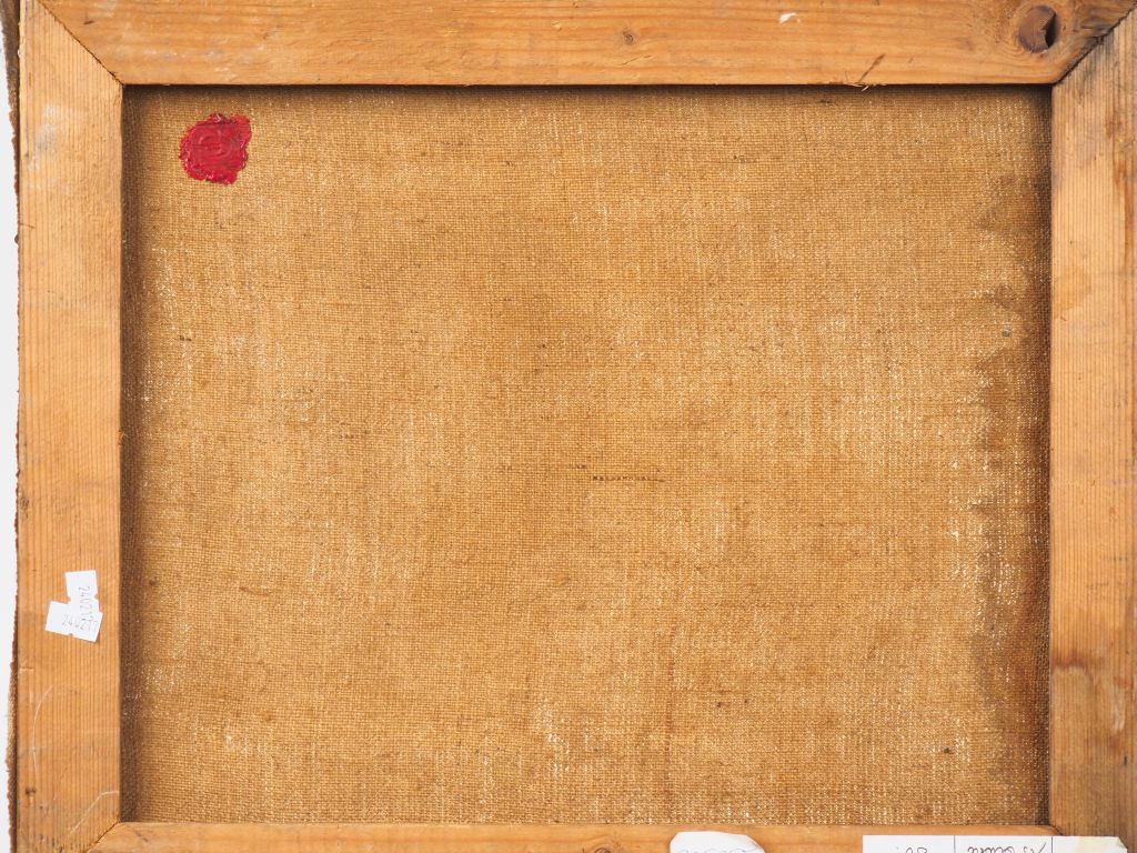 Ecole française XXème. "Composition". Huile sur toile, signée en bas à droite. Dim. 38 x 45,5 cm.