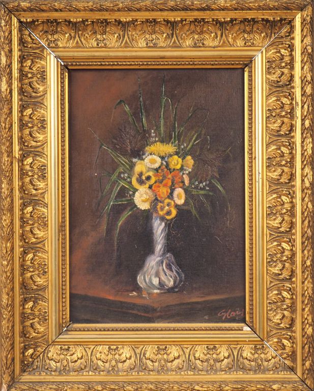 Ecole française XXème. "Nature morte au bouquet". Huile sur toile, signée en bas à droite. Dim. 35 x 24 cm.