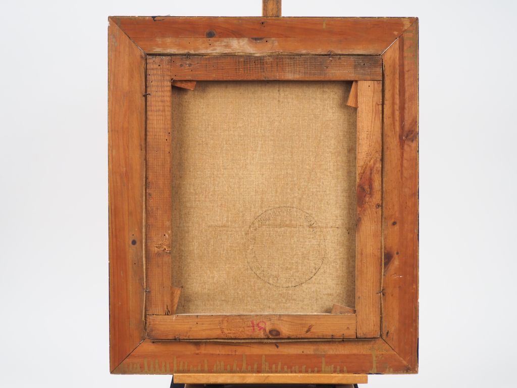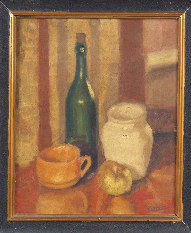 Ecole française XXème. "Nature morte". Huile sur toile, signée en bas à droite. Dim. 46 x 38 cm.
