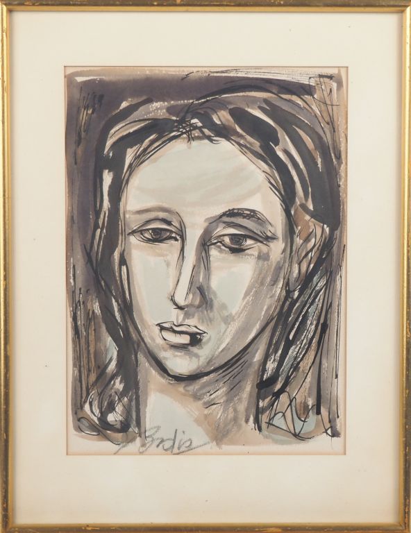 Ecole française Xxème. "Portrait de jeune femme" Aquarelle et encre signée en bas à gauche Dim. 26,5 x 19,5 cm