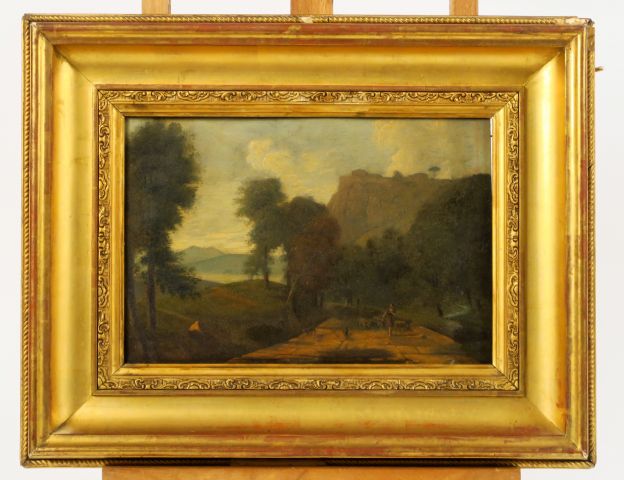 Lot de Ecole XIXème "Paysage animé" Huile sur zinc Dim. 20 X 29,5 cm au prix de 150 à 200 € en vente aux enchères par l'hôtel des ventes Primardeco
