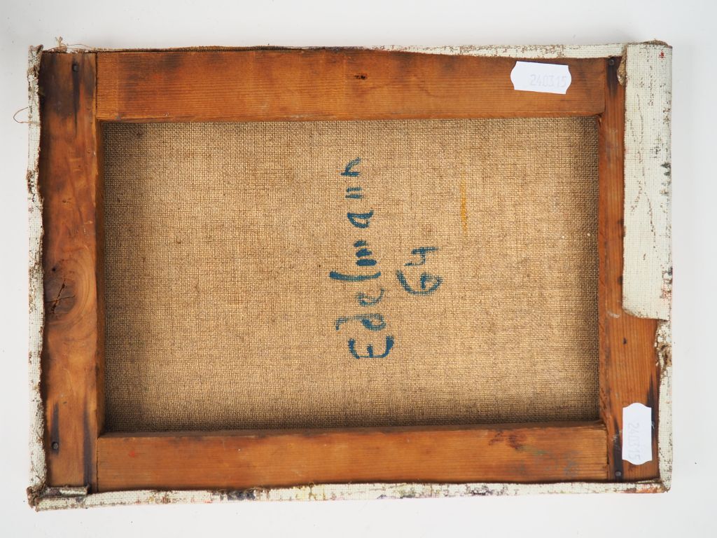 EDELMANN. "Paysage au sapin". Huile sur toile, signée en bas à gauche, datée au dos 1964. Dim. 19,5 x 27 cm.