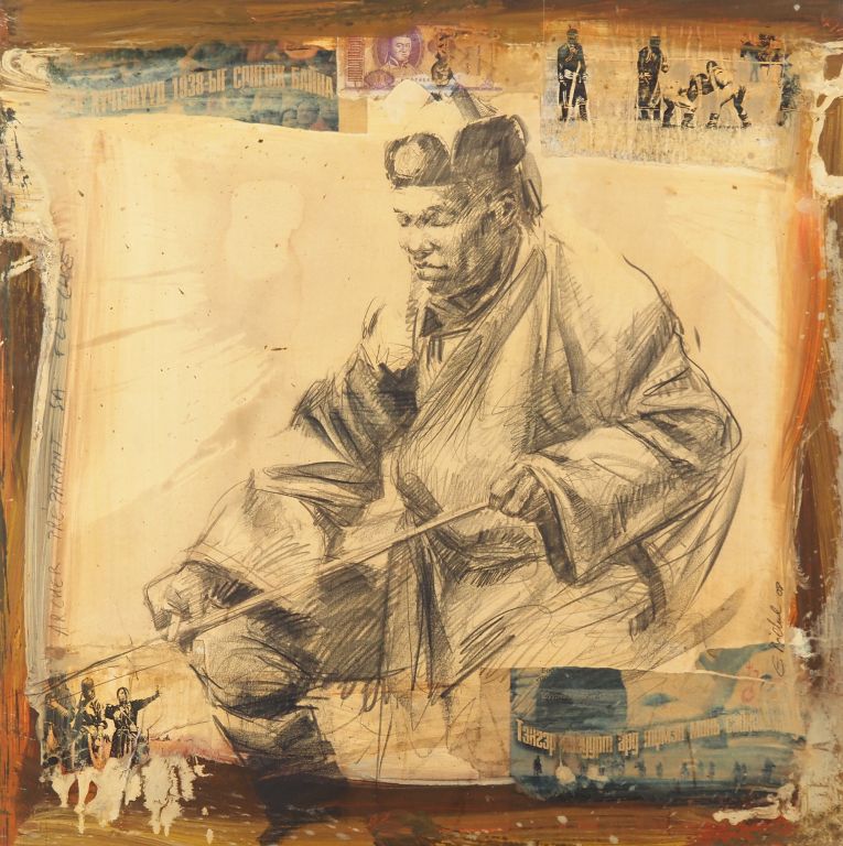 Emmanuel MICHEL. "le chasseur" Technique mixte, signée en bas à droite Dim. 60 x 60 cm