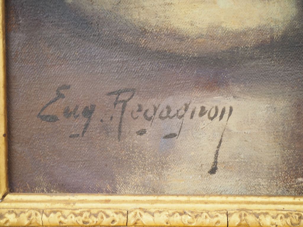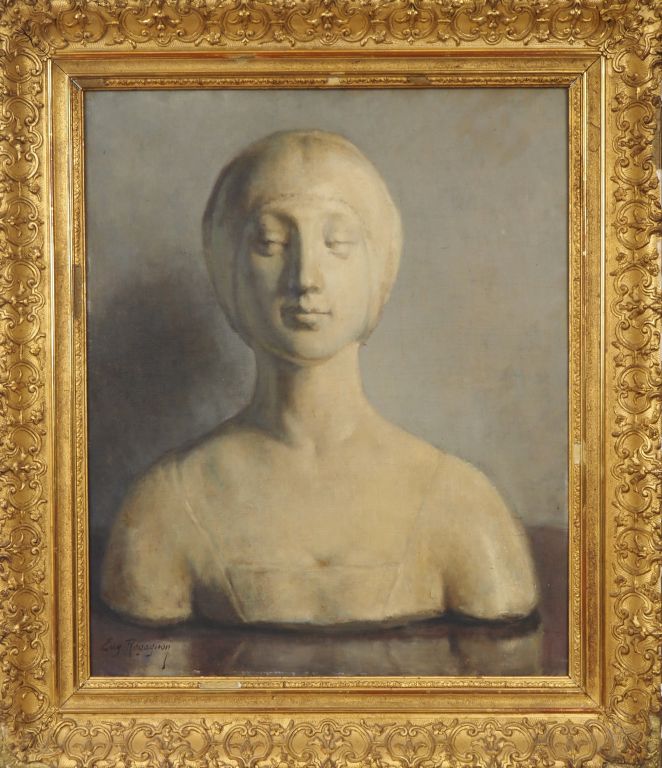 Eugène REGAGNON. "Portrait d'un buste en platre figurant la Belle Paule" Huile sur toile, signée en bas à gauche. Dim. 65 x 54,5 cm