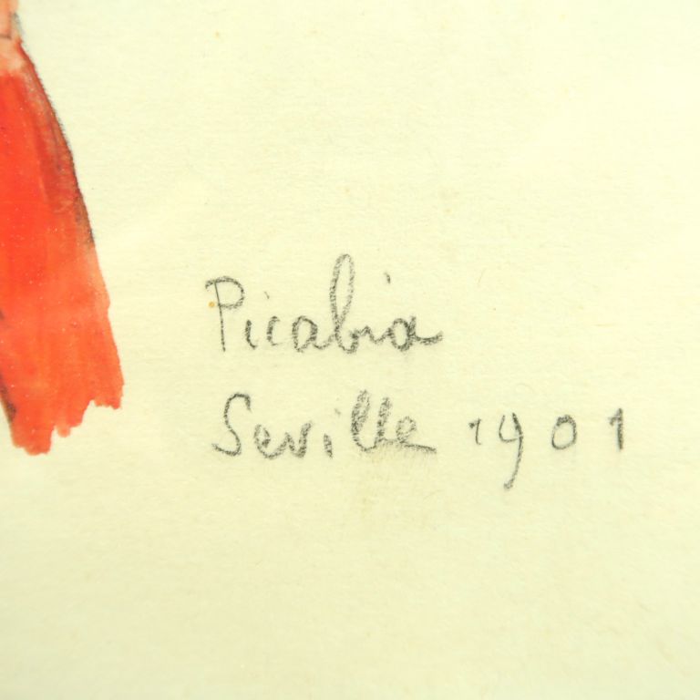 F. PICABIA. "Toréador". Aquarelle, encre et crayon sur papier, signée en bas à droite, située à Séville et datée 1901. Dim. : 46.5 x 39.5 cm. Certificat du comité Picabia.