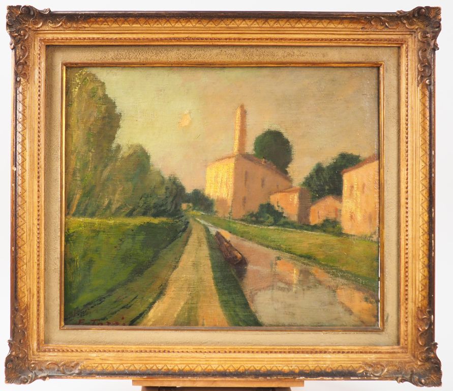 F. TOZZI. "bord de canal". Huile sur toile, signée en bas à gauche. Di...