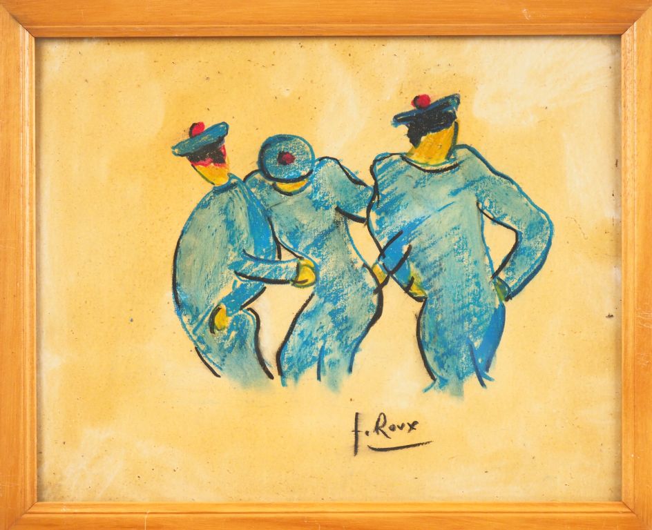 Fernand ROUX. "Les trois matelots". Dessin, signé en bas à droite. Dim. 23,5 x 29,5 cm.
