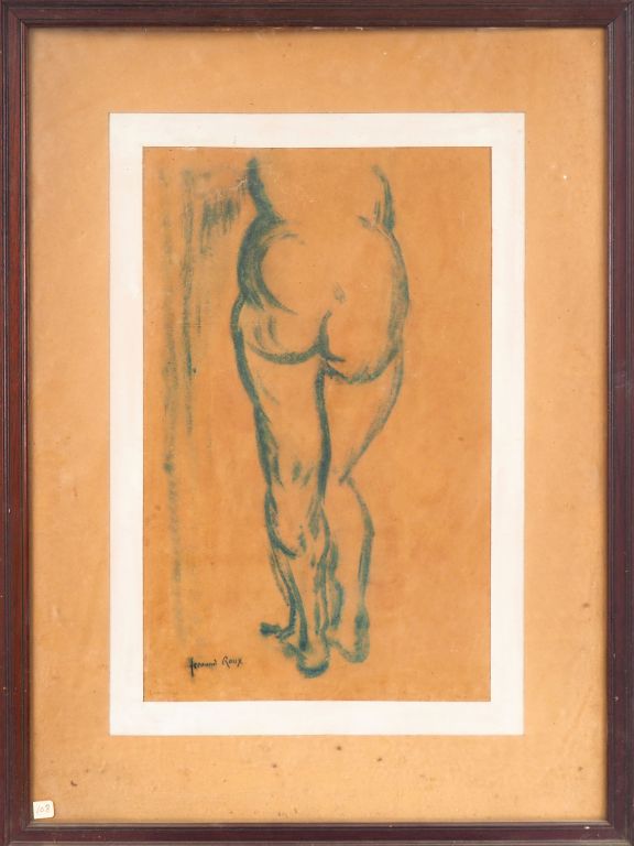 Lot de Fernand ROUX. "Nu de dos". Fusain, signé en bas à gauche. Dim. 49 x 31 au prix de 60 à 80 € en vente aux enchères par l'hôtel des ventes Primardeco