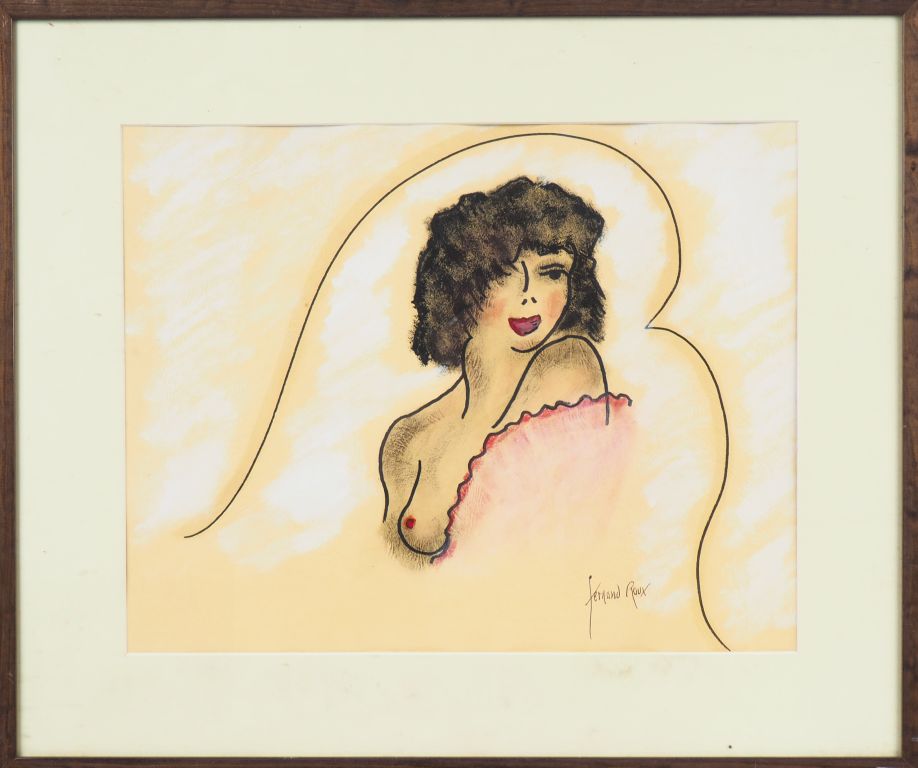 Fernand ROUX. "Portrait d'élégante". Technique mixte signée en bas à droite. Dim. 38 x 48 cm.