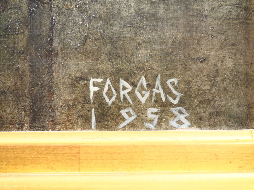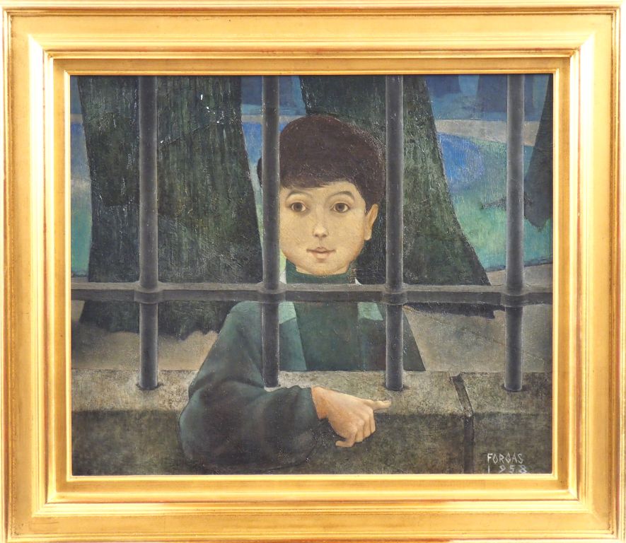 FORGAS. "l'enfant à la grille" Huile sur toile, signée en bas à droite et datée 58 Dim. 46,5 x 55 cm