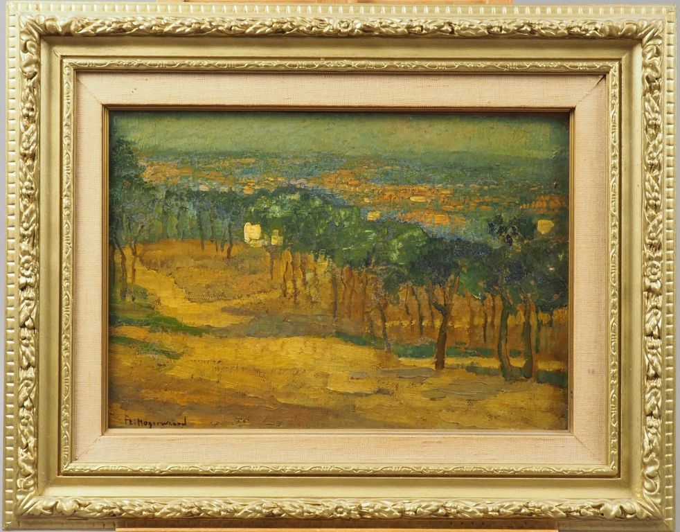 Frans HOGERWAARD. "Pinède". Huile sur toile marouflée sur panneau, signée. Dim. 25 x 35,5 cm. Huile sur panneau, signée en bas à droite
