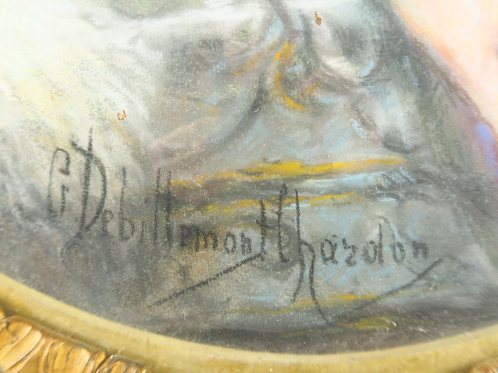 G. DEBILLEMONT CHARDON. "Portrait de dame en médaillon" Pastel. Signé en bas. Dim. 81 x 65 cm (mouillures, cadre accidenté)