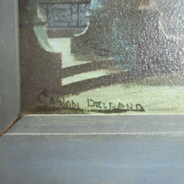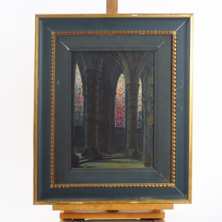 G. DELPAND. "Intérieur d'église". Huile sur toile, signée en bas à gauche. Dim. 33 x 23,5 cm