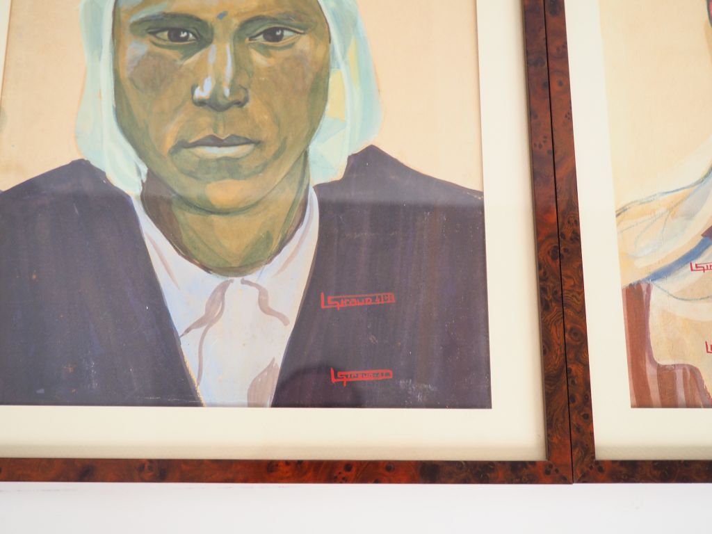 GIRAUD. "Portraits d'hommes d'Afrique du Nord". Paire de portraits en techniques mixtes signés. Dim. (à vue) : 30,5 x 23,5 cm.