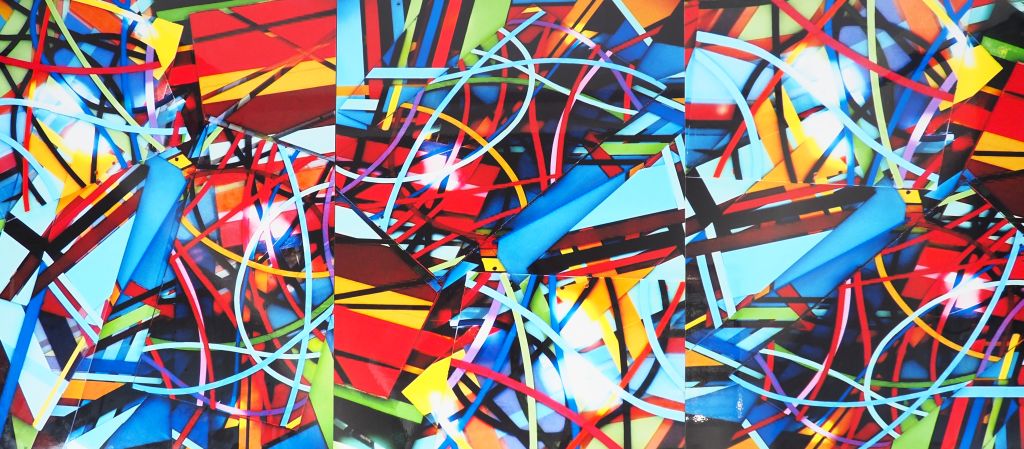 Lot de GLACHNER. "Eclats" Tryptique. Dim. de chaque panneau : 60 x 45 cm au prix de 100 à 200 € en vente aux enchères par l'hôtel des ventes Primardeco