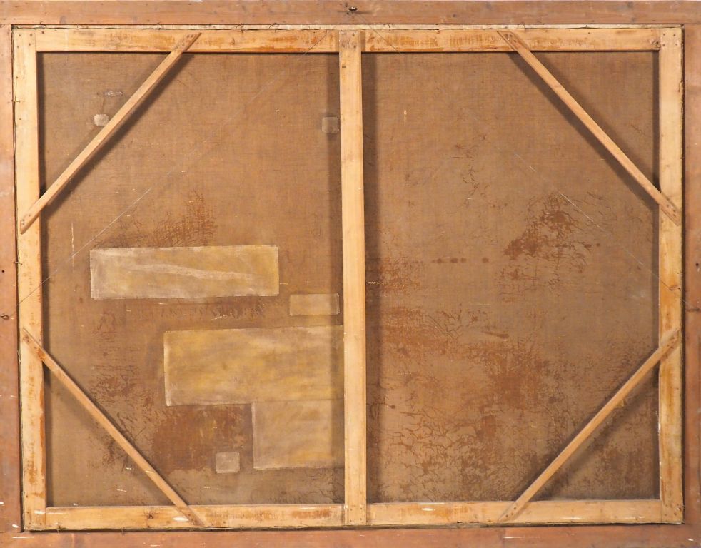 GODCHAUX. "La baie de Naples" Grande huile sur toile, signée en bas à gauche , dans son cadre à godrons en bois et stuc doré. Dim. 149 x 199 cm (restaurations)