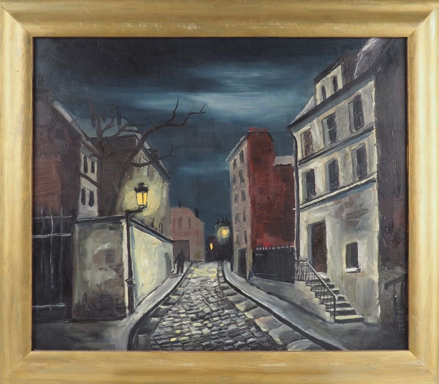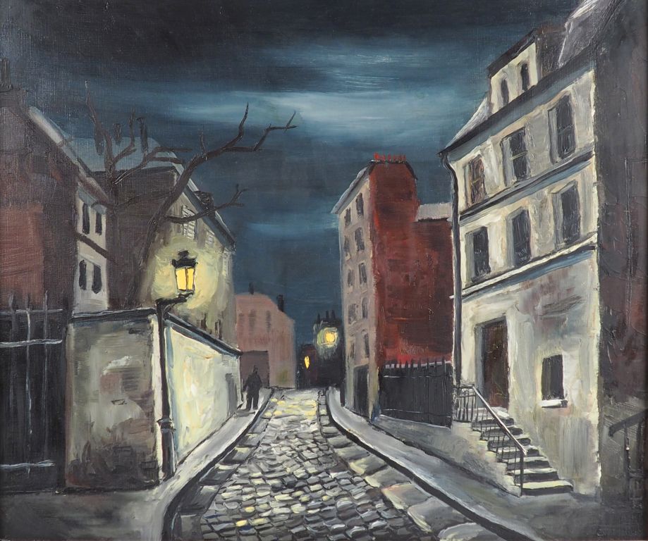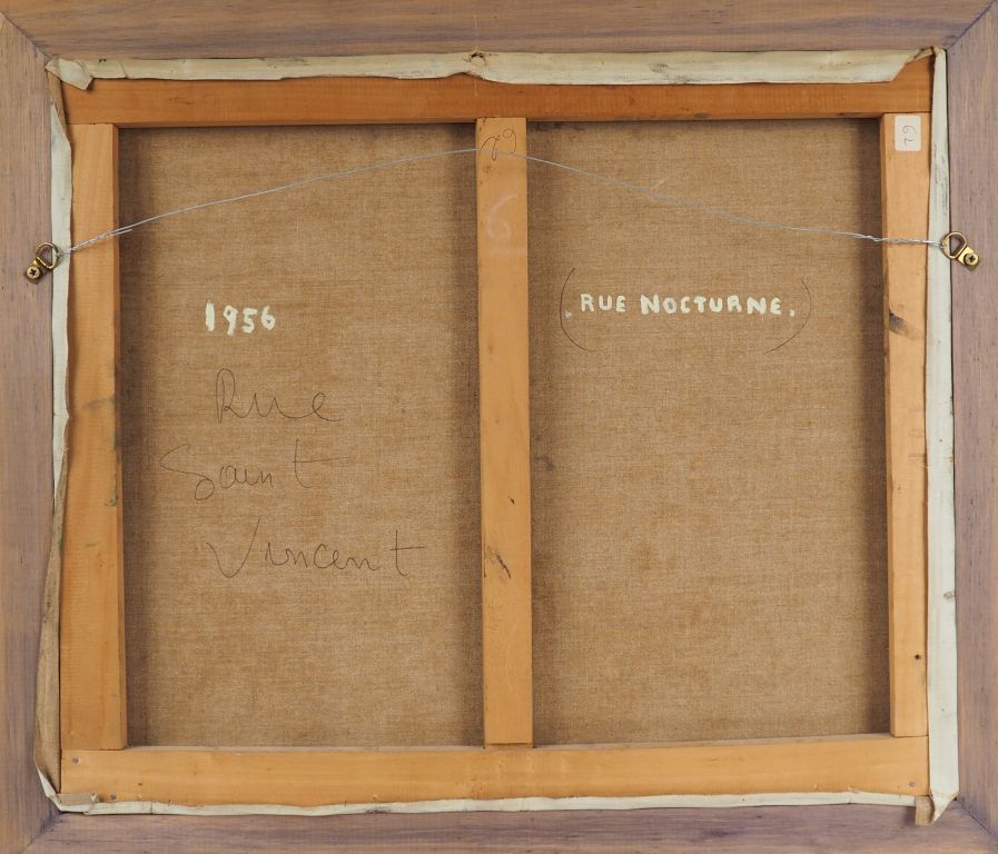 GREMIN. "rue nocturne" Huile sur toile, signée en bas à droite et datée au dos 1956 Dim. 46,5 x 55 cm