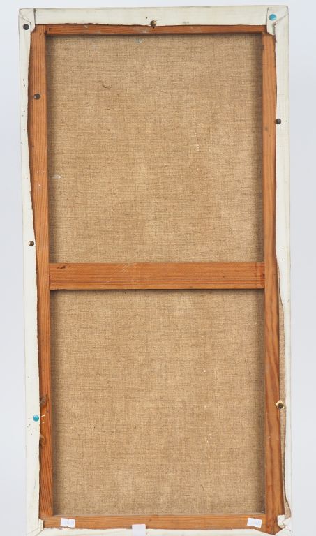 Gyorgy FARKAS. "Harlequin". Huile sur toile, signée en bas à droite et datée 1968. Dim. 80,5 x 40 cm.