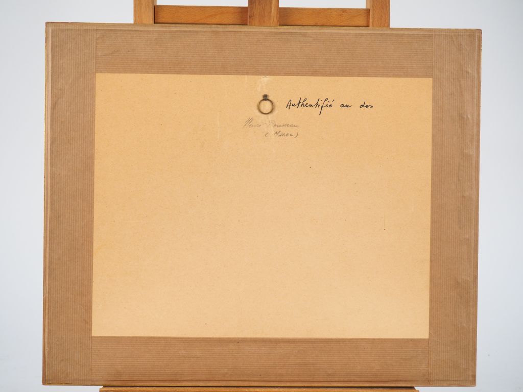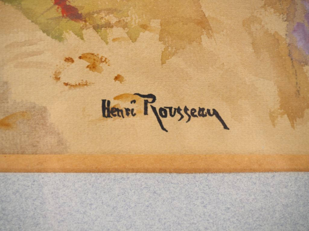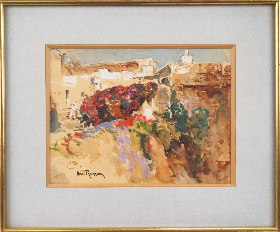 Henri ROUSSEAU. "Buisson de fleurs dans un ville du Maroc" Aquarelle, tampon d'atelier. Dim. 21 x 28 cm.