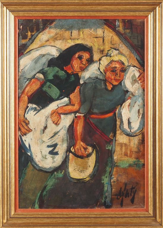 Henry D'ANTY. "les lavandières" Huile sur carton, signée en bas à droite Dim. 49,5 x 34,5 cm