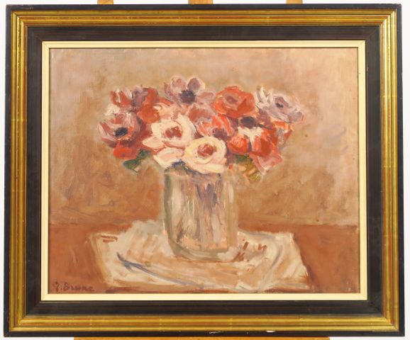 J. BRUNE "Bouquet de roses et d'anémones" Huile sur toile. Signée en bas à gauche. 33 x 41 cm