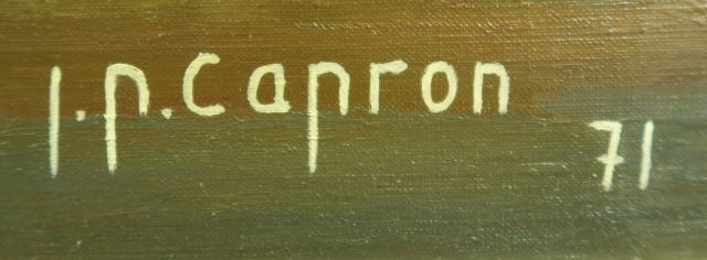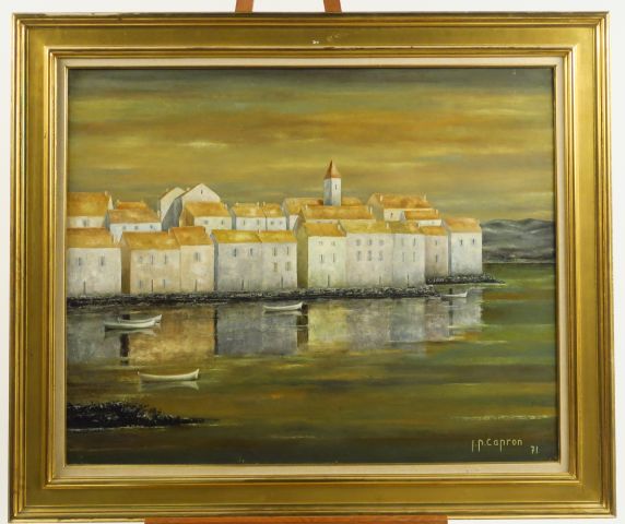 J.P CAPRON "Village en bord de mer" Huile sur toile. Signée et datée 71 en bas à droite. 81 x 100 cm