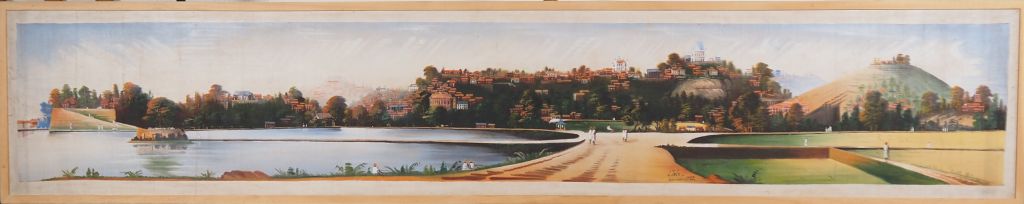 J. RAKE. "vue panoramique de Tananarive" Grande huile sur toile, signée à droite, située et datée 1925 Dim. 227 x 43 cm