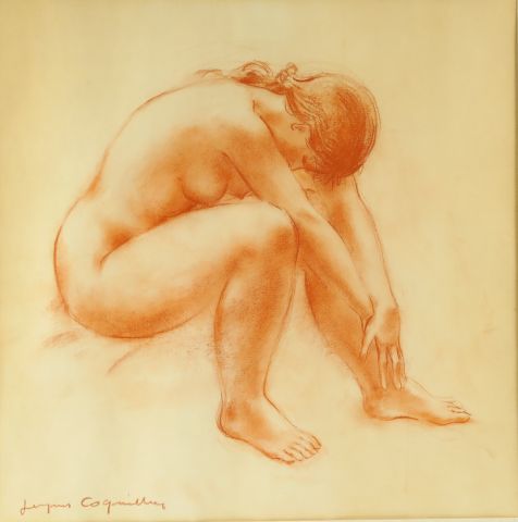 JACQUES COQUILLAY "Etude de jeunes filles nues". Deux sanguines, signées. 41 x 41,5 cm et 40,5 x 40,5 cm