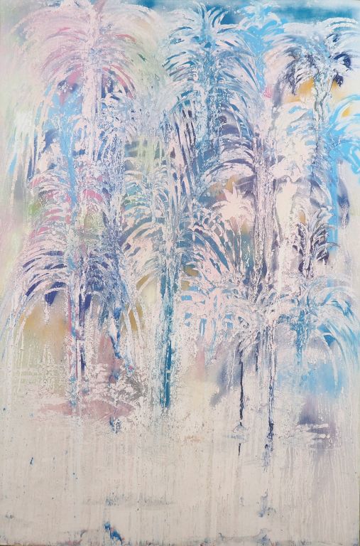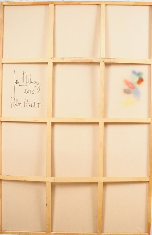 Jan DELUNAY. "Palm beach II". Huile sur toile, signée, datée et titrée au dos. Dim. 196 x 130 cm.
