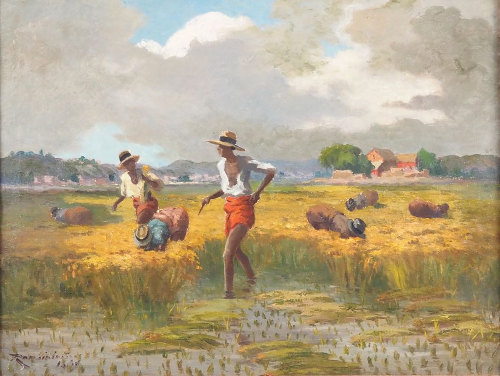 Jean RAMBININTSOA. "les moissons" Huile sur toile, signée en bas à gauche et datée 1941 Dim. 39 x 50 cm