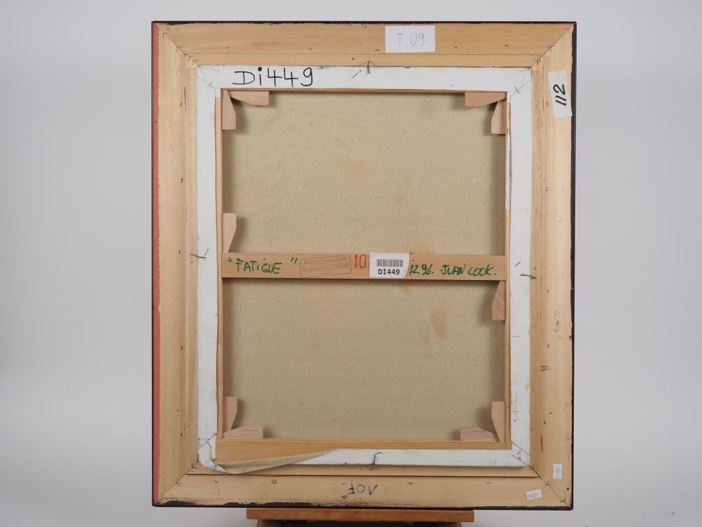 Juan COOK. "Fatigue" Huile sur toile, signée en bas à droite et datée 96. Dim. 55 x 46 cm