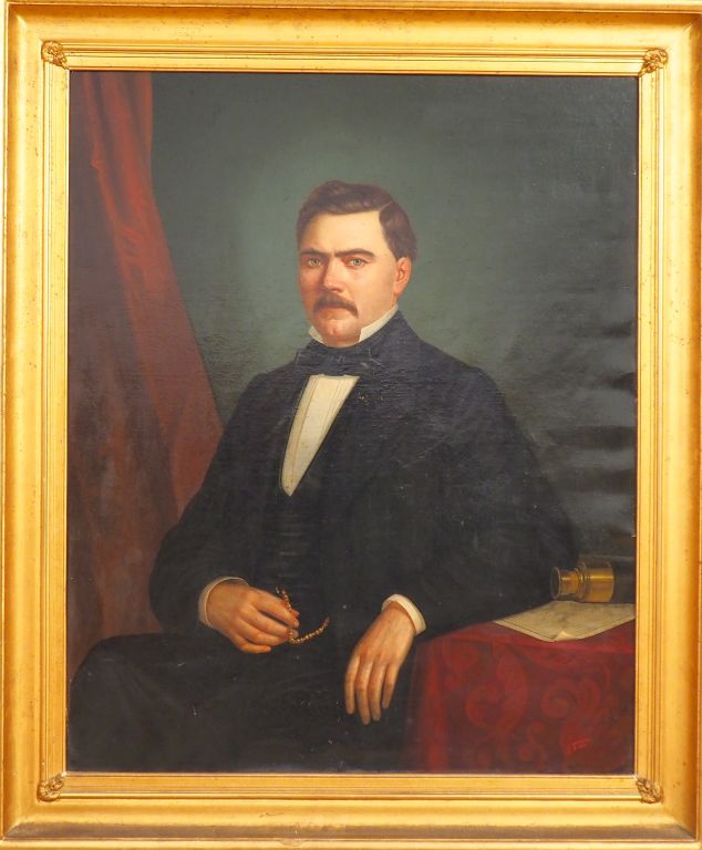 Jules JAMMES. "Portrait d'homme à la longue vue". Huile sur toile signée en bas à droite et datée 1861. Dim. 100 x 81,5 cm.