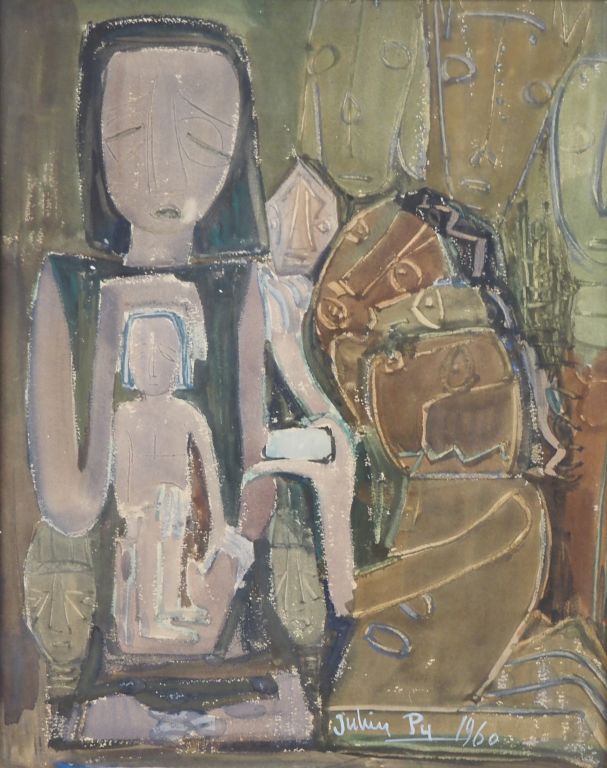 Julien PY. "Personnages et divinités paiennes" Aquarelle, signée en bas à droite et datée 1960 Dim.47 x 37 cm