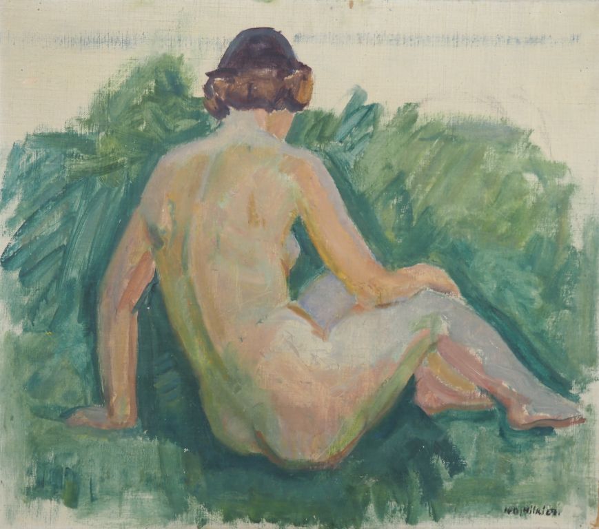 KNUD OVE HILKIER. "Etude de jeune femme nue de dos" Huile sur toile, signée en bas à droite Dim. 65 x 74 cm