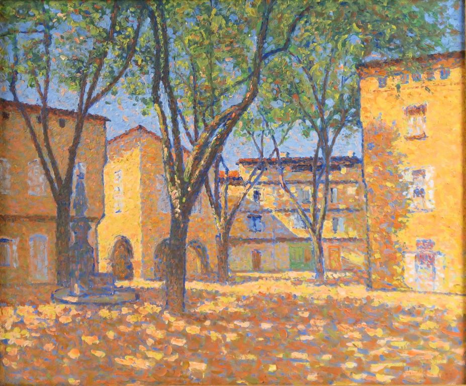 LAUGÉ Achille, 1861-1944 "La place d'Alet-Les-Bains", 1923 Huile sur toile. Signée et datée en bas à droite. 46x55 cm Cette oeuvre sera insérée dans le Catalogue raisonné de l'artiste actuellement en préparation par Nicole Tamburini. Un certificat de Madame Nicole Tamburini sera délivré à l'acquéreur. Experts : Michel et Raphaël Maket