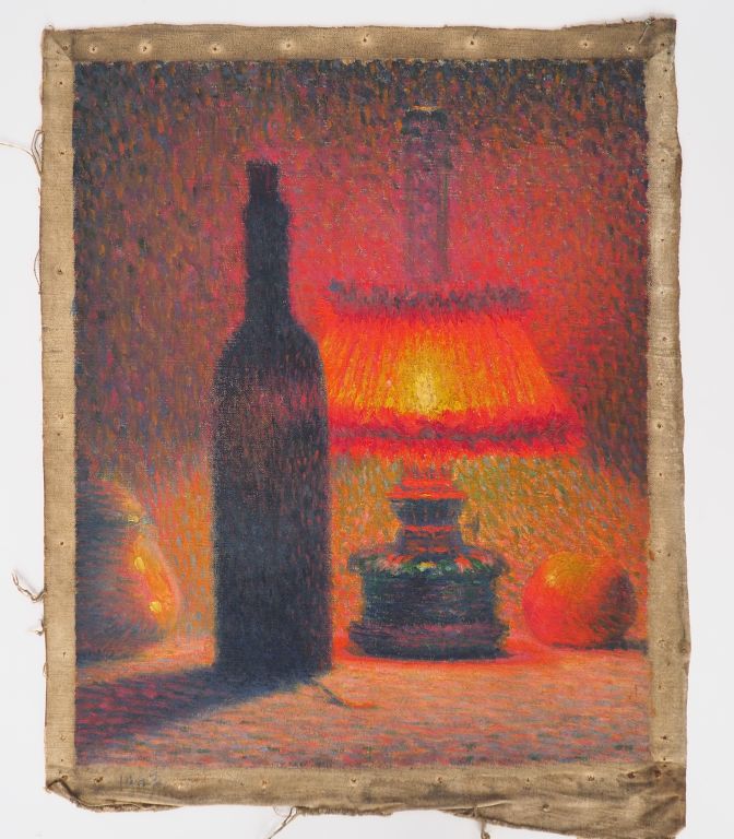 Léon PARENT (attribué à). "nature morte à la lampe à pétrole" Huile sur toile Dim. 40,5 x 33 cm
