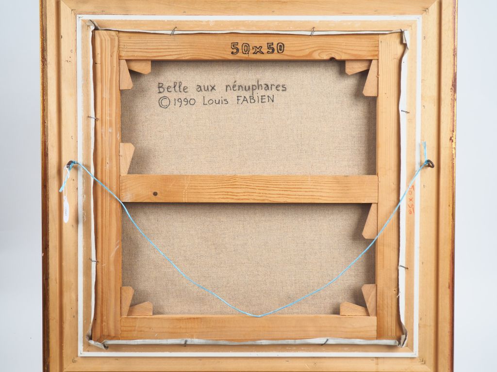 Louis FABIEN. "Belle aux nénuphars". Huile sur toile, signée en bas à gauche. Dim. 50 x 50 cm.